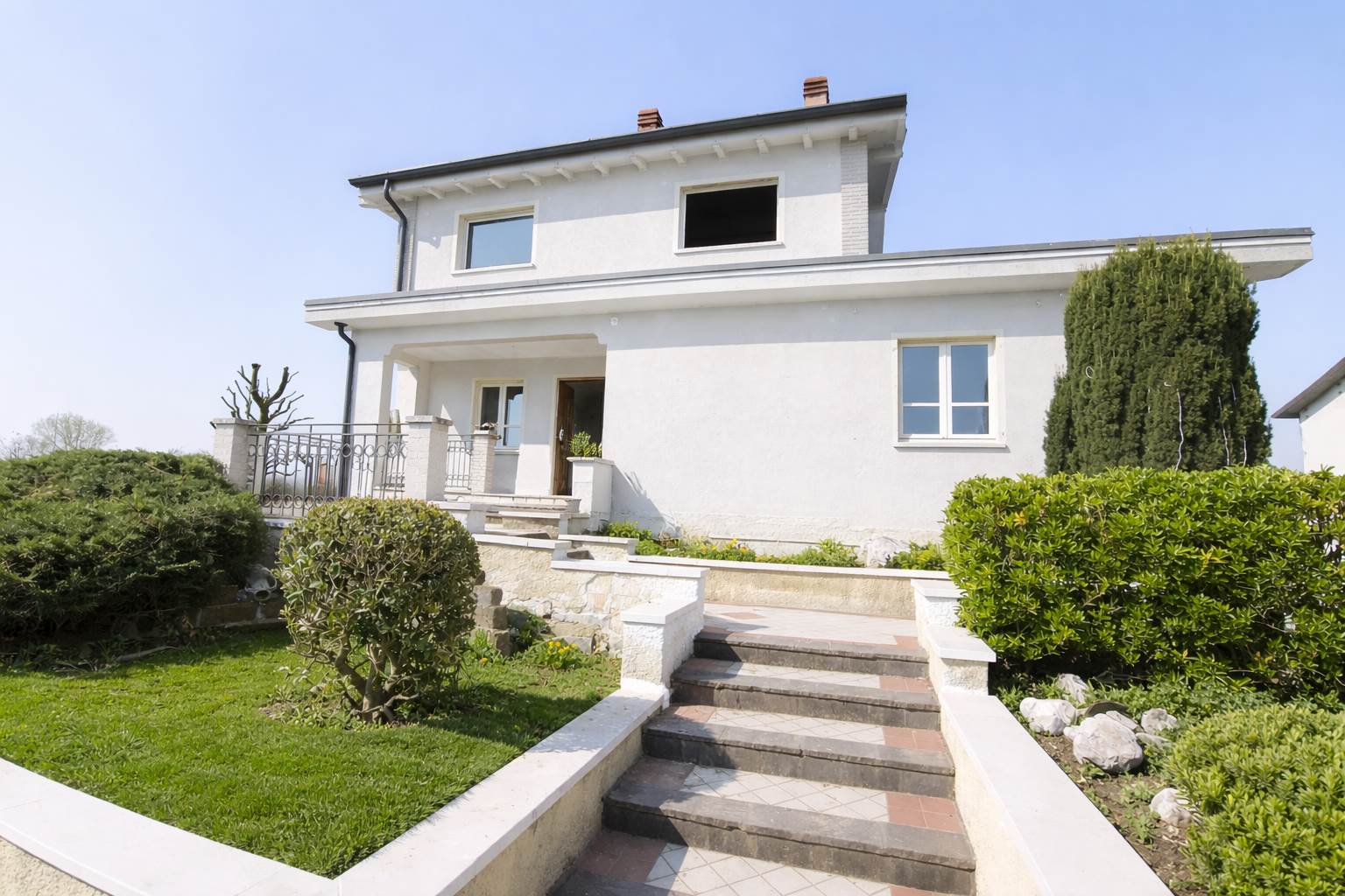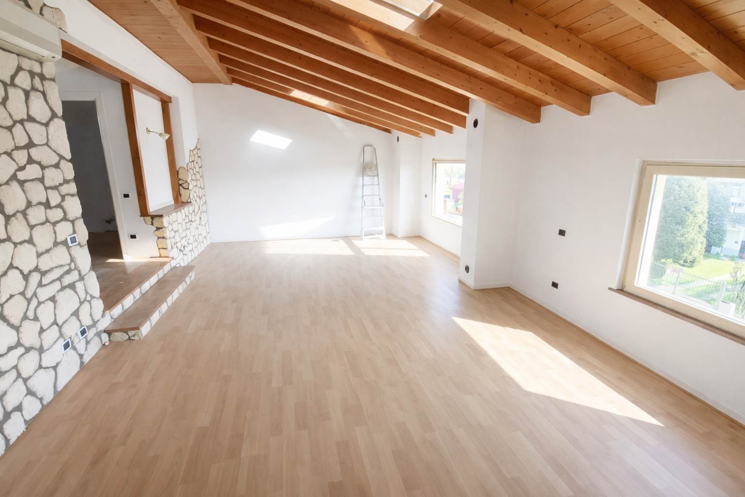 Gli spazi importanti li troviamo anche sulla parte superiore della villa raggiungibile dalla zona giorno, la scala si può cambiare in base alle proprie esigenze, una zona mansardata capace di alloggiare altre 2 camere da letto piuttosto che essere utilizzata come zona svago e studio dato che al piano troviamo altro bagno grande che rende la mansarda una zona indipendente. La zona al piano semiinterrato ha una taverna di circa 80 mq con canna fumaria per l'installazione di una stufa a pellet o termocamino, affiancata da un bel bagno lavanderia completissimo: qui possiamo prevedere di portare i nonni!